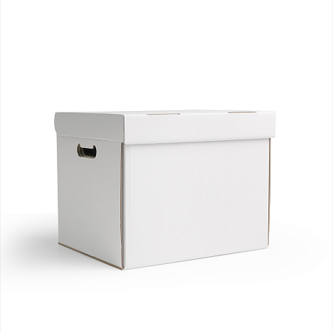 Гофрокороб архивный 370х300х300 с печатью изготовлен из прочного трехслойного гофрокартона марки Т-24 белого цвета.