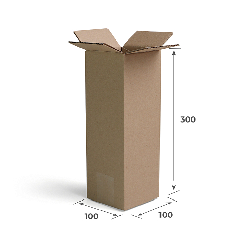 Гофрокороб 4-х клапанный 100х100х300 изготовлен прочного картона марки Т-23. Имеет следующие характеристики и размеры: