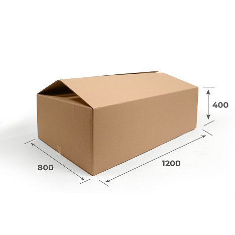 Картонная коробка 1200х800х400 производится из пятислойного гофрокартона П-32 в буром цвете. Данный материал отличается экологичностью и не вреден для окружающей среды. Это четырехклапанный гофрокороб, который относится к модели FEFCO 0201.
