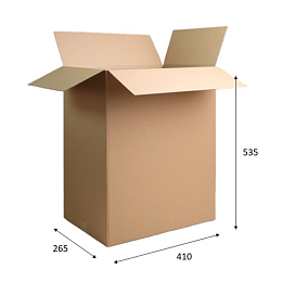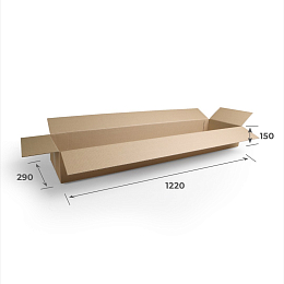 Гофрокороб145х40х30 самосборный с усиленными торцевыми стенками и откидной крышкой. Универсальная самосборная конструкция коробки легко собирается по заранее вырубленным в процессе производства биговкам.