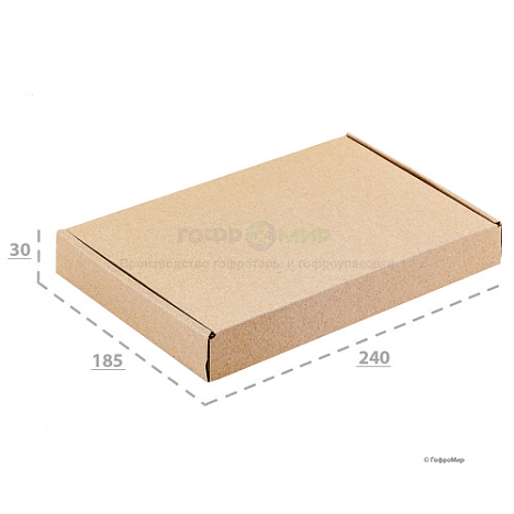 Простой самосборный гофрокороб 240х185х30 конструкции FEFCO 0427. Мы изготавливаем картонные коробки как бурого, так и белого цвета.