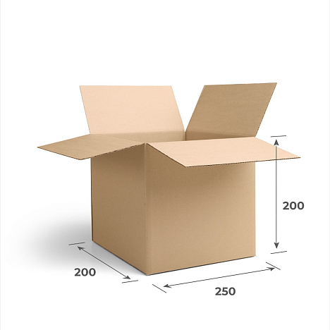Гофрокороб 4-х клапанный 250х200х200. Небольшая коробка бурого цвета из трехслойного гофрированного картона марки Т-23 профиля B. Прекрасно подходит по любые цели и товары.