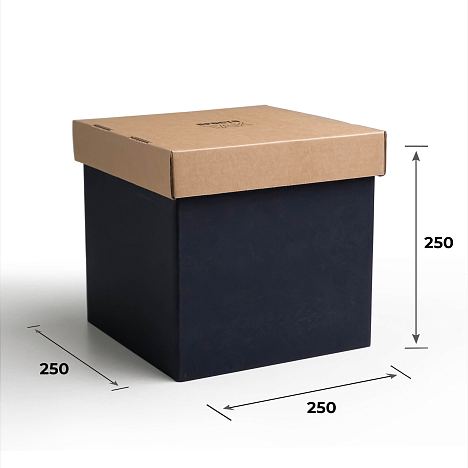 Гофрокороб крышка-дно 250х250х250 изготовлен из трехслойного гофрокатона бурого цвета. На изделия нанесена цифровая печать. Модель «крышка-дно», где крышка по каталогу FEFCO 0422, а дно - 0216, очень легкая, компактная и не занимает много места.
