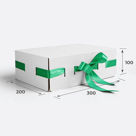 Коробка подарочная 300х200х100 Т23 E Белый 0999 Зеленая лента (в комплект не входит)