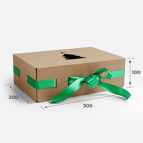 Коробка подарочная 300х200х100 Т23 E Бурый 0999 "Елка" Зеленая лента (в комплект не входит)