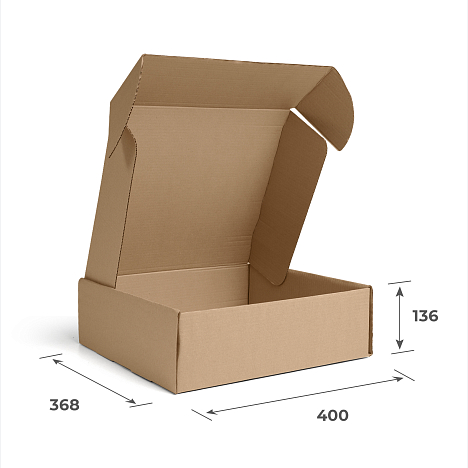 Гофрокороб самосборный 400x368x136 изготовлен из трехслойного бурого микрогофрокартона марки T-23. При необходимости, для клиентов данный короб можем изготовить и в белом цвете.