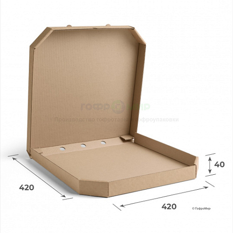 Коробка для пирогов 420x420x40 произведена из трехслойного картона марки Т-23. Имеет стандартную конструкцию FEFCO 0426 с откидной крышкой. Очень удобный вариант упаковки и транспортировки готовой еды, например, пирогов и горячей пиццы. Коробки из гофрокартона - 100% экологически безопасное сырье как для продуктов питания, так и для окружающей среды. Они стойки к механическим повреждениям, не деформируются и отлично удерживают тепло.