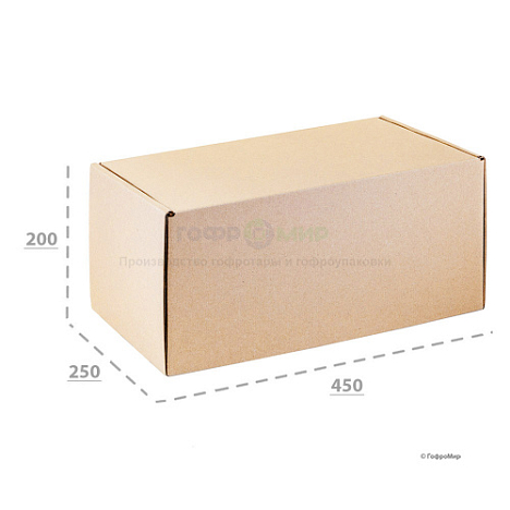 Самосборный гофрокороб 450х250х200 изготовлен из пятислойного гофрокартона марки П-32 профиля ВС. Он прочный и легко собирается по отмеченным биговкам. Его можно использовать для любые цели: транспортировки, упаковки товаров, хранения вещей и мелких товаров.