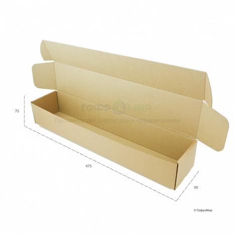 Самосборный гофрокороб 475x95x75 изготовлен из микрогофрокартона бурого цвета марки Т-11. Тара выглядит очень аккуратно благодаря своей конструкции - «коробка-шкатулка» 0427 по каталогу FEFCO. Ее можно использовать практически для любой продукции. Коробка очень легко собирается и занимает мало места. Она выдерживает значительно большой вес, поэтому под весом товара она деформируется. Материал, из которого мы производим такие картонные коробки, экологически чистый и подвержен вторичной переработке.