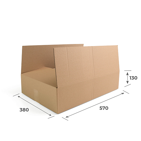 Гофрокороб 4-х клапанный 570x380x130 — практичная тара, которая может применяться в любой сфере. Собирается и склеивается скотчем за пару минут. Может быть использована для хранения различных товаров или как транспортировочная упаковка.