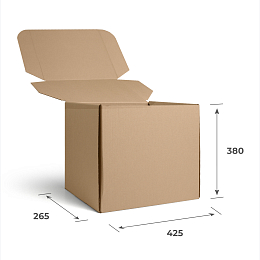 Гофрокороб 100х100х50 самосборный с усиленными торцевыми стенками и откидной крышкой. Универсальная самосборная конструкция коробки легко собирается по заранее вырубленным в процессе производства биговкам.