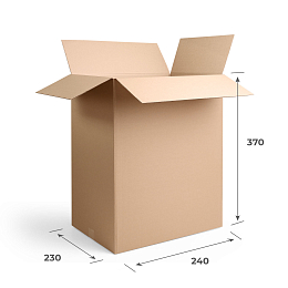 Гофрокороб 150х110х25 самосборный с усиленными торцевыми стенками и откидной крышкой. Универсальная самосборная конструкция коробки легко собирается по заранее вырубленным в процессе производства биговкам.