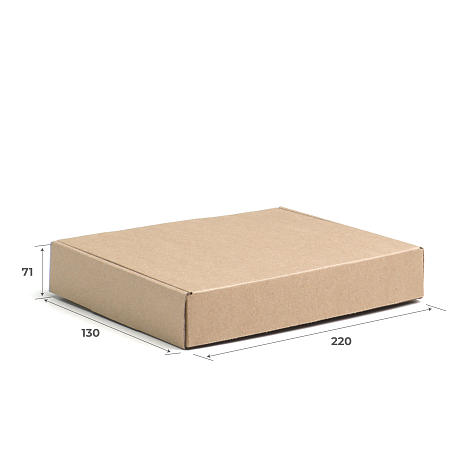 Гофрокороб 220х130х71 представляет собой коробку с цельновысеченной крышкой и отдельным дном-вставкой (тип "ласточкин хвост"). Крышка создает жесткую и устойчивую конструкцию. Такие коробки не требуют склеивания клапанов, легко собираются и часто используются для подарочной, сувенирной продукции и дорогих товаров.