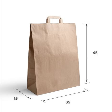 Купите пакет с плоской ручкой крафт 45х35х15 (в*ш*г) по выгодной цене на сайте компании «Гофромир».