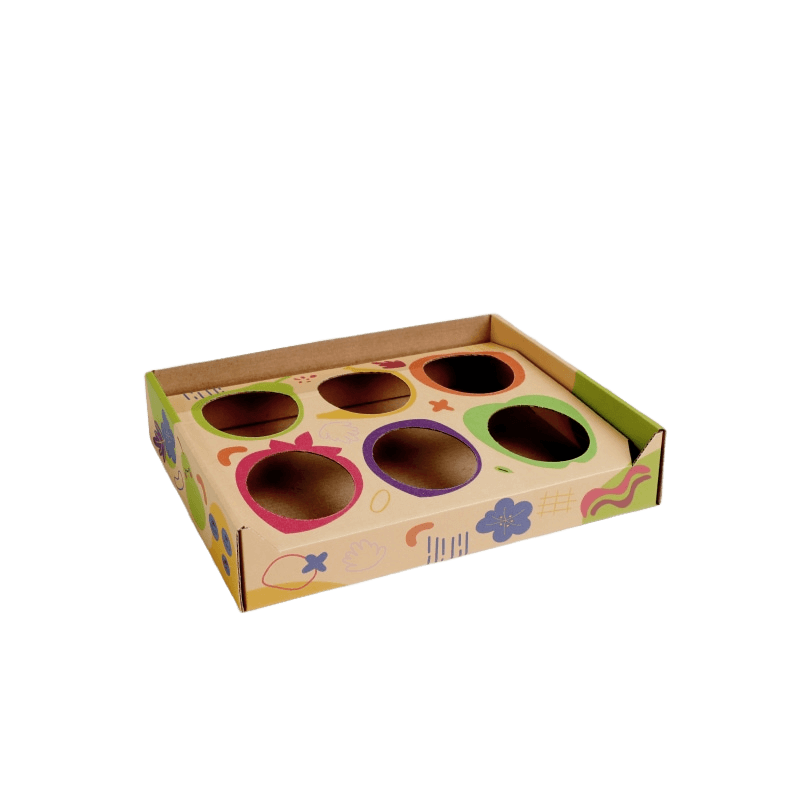 Кондитерский лоток-телевизор представляет собой гофрокартонную коробку без верхней крышки. Особенности данной упаковки — высокая прочность, жесткость, наличие прорезных ручек, вентиляционных отверстий для обеспечения воздухообмена.