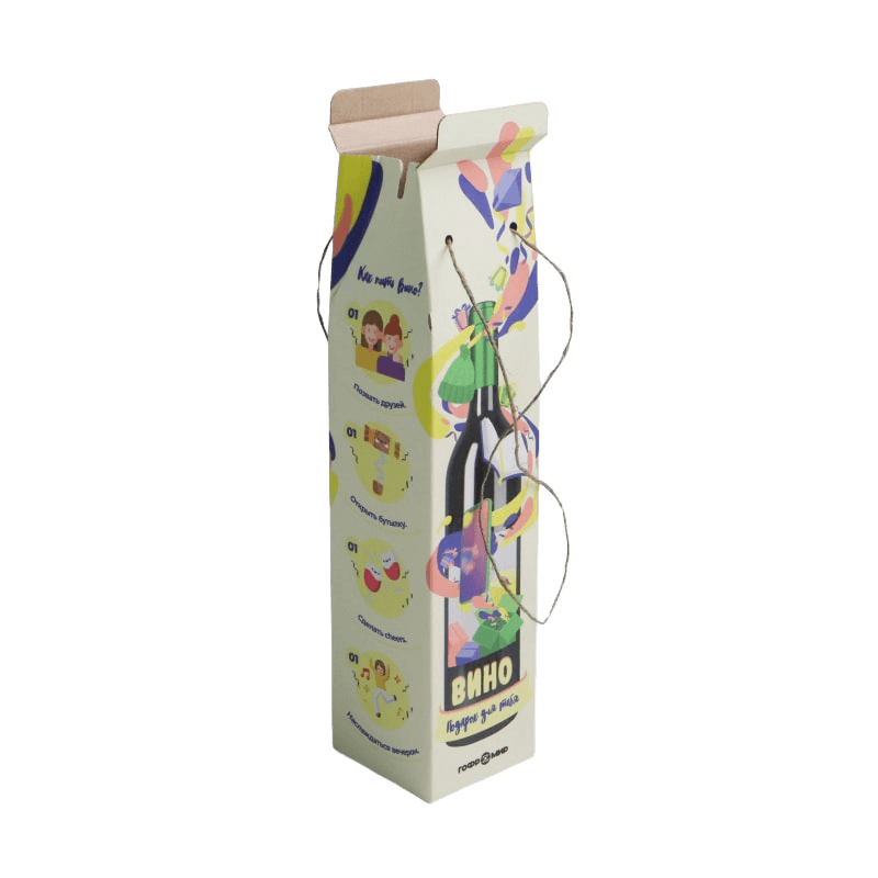 К нам обратился представитель нового бренда вина с просьбой изготовить коробку для вина, котору было бы удобно транспортировать и не стыдно подарить. Коробка должна вмещать 5 бутылок вина, и обеспечивать их целостность.
