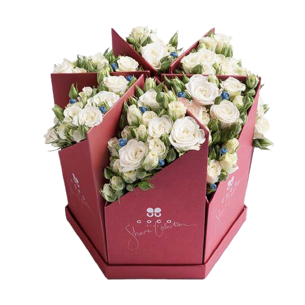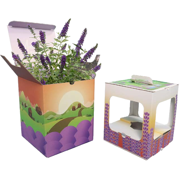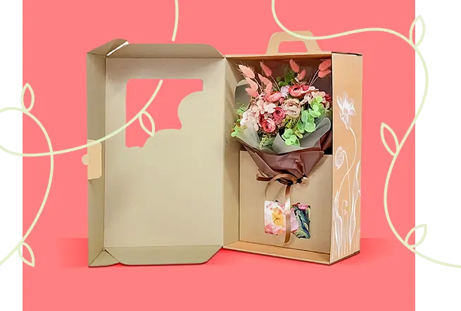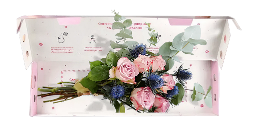 Разнообразие техник печати и красителей позволяет создавать упаковку насыщенных и пастельных цветов, с однотонной и принтованной поверхностью, размещать логотип и информацию о компании. Для повышения влагостойкости цветочных коробок применяется техника ламинирования, лакирования или каширования. Эстетичные короба идеально вписываются в любой интерьер, устойчивы, долго сохраняют привлекательность.