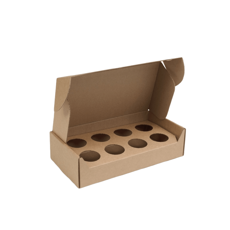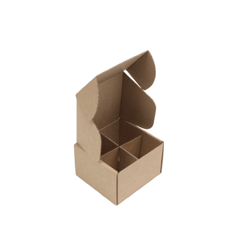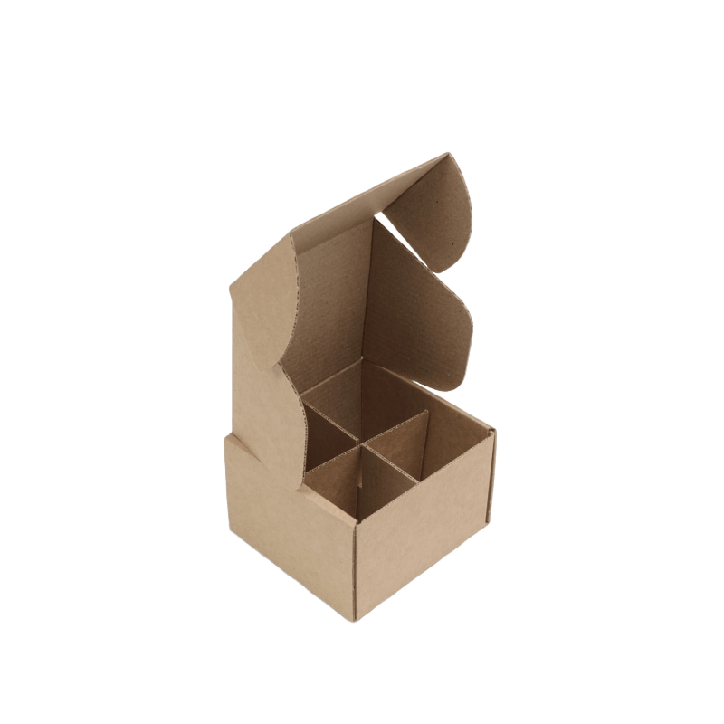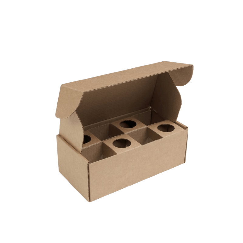 - Гофроящики с ячейками: фиксируют каждую емкость в отдельном отсеке, исключая риск повреждения.