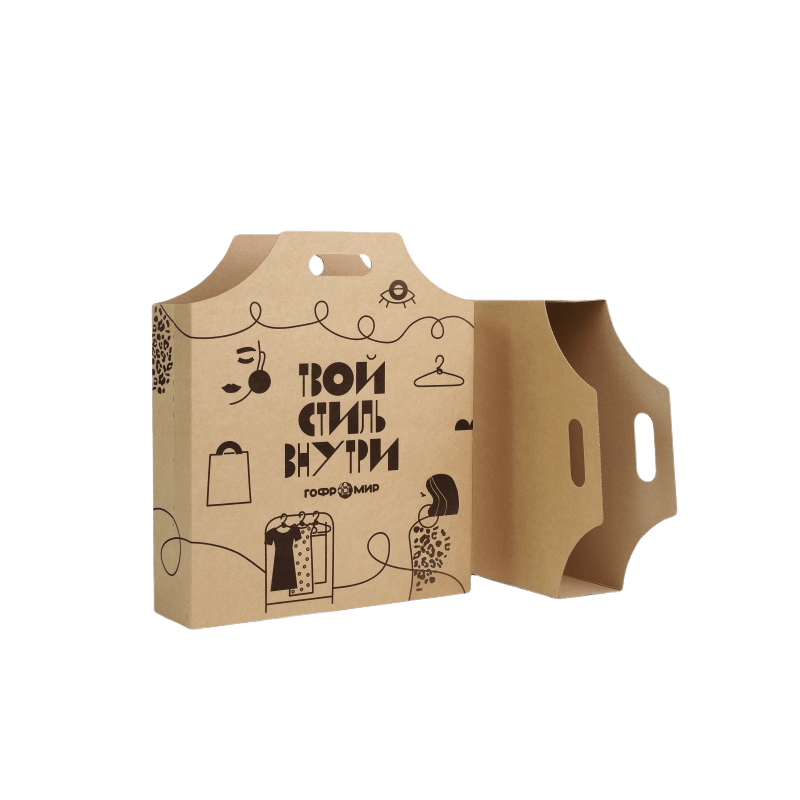 Дополнительно в упаковочной конструкции могут быть предусмотрены демонстрационные окна с прозрачным пластиком или без него, а также специальные прорезные или накладные ручки, которые делают коробку более удобной для переноски.
