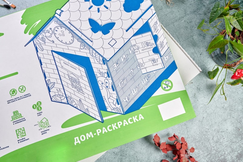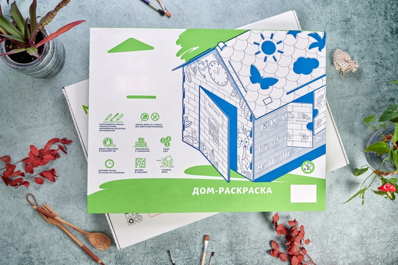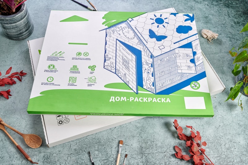 Очень популярной упаковкой среди наших заказчиков смело можно считать - коробку под детские картонные домики и домики-раскраски. У нас они всегда получаются очень красочные, надежные и максимально практичные.