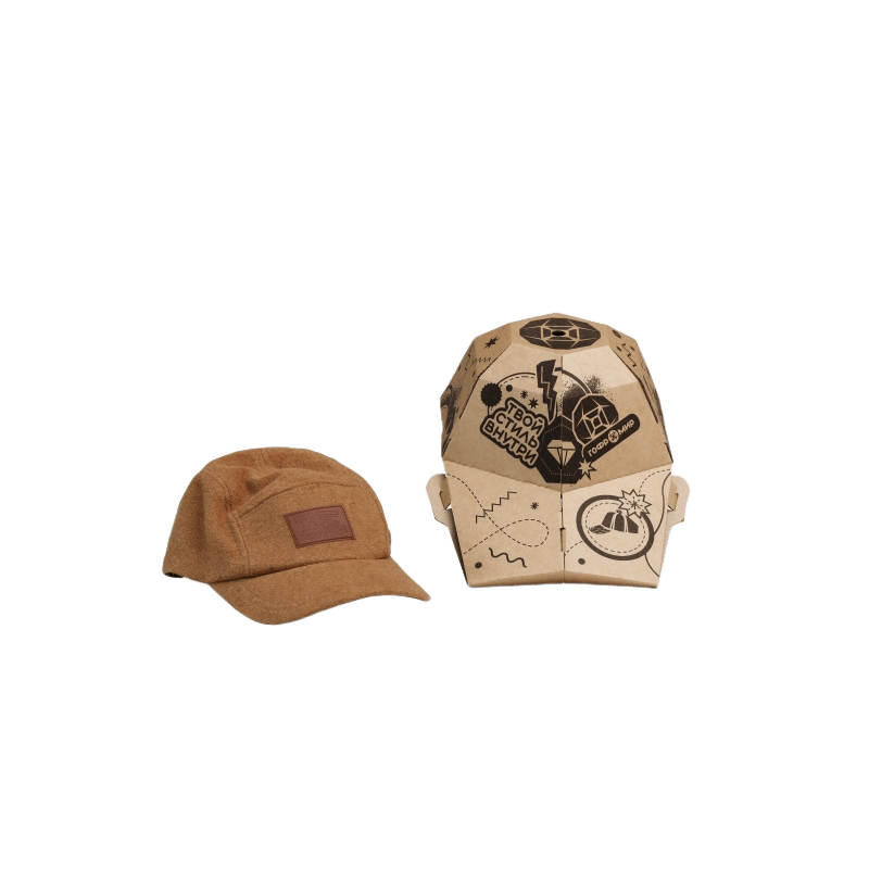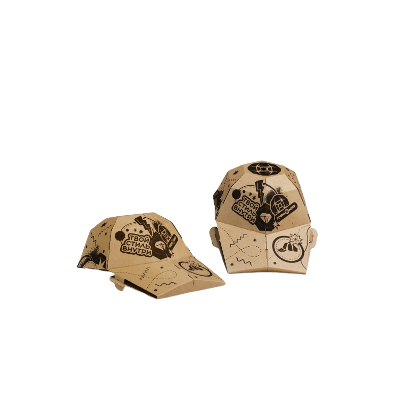 Это уникальная коробка из гофрокартона под кепку с козырьком.