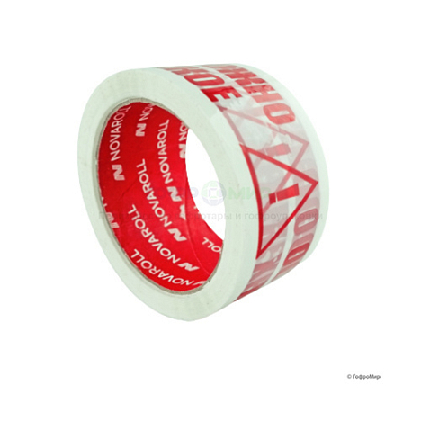 Сам скотч представляет собой обычную клейкую ленту белого цвета с красной надписью «Осторожно хрупкое».