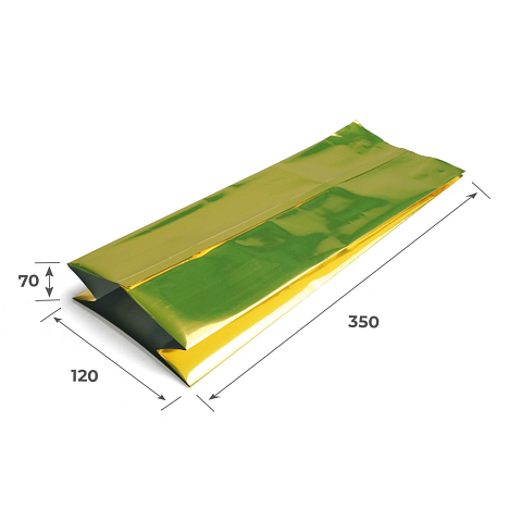 Пакет с центральным швом металлизированный 120+70х350 (золото)