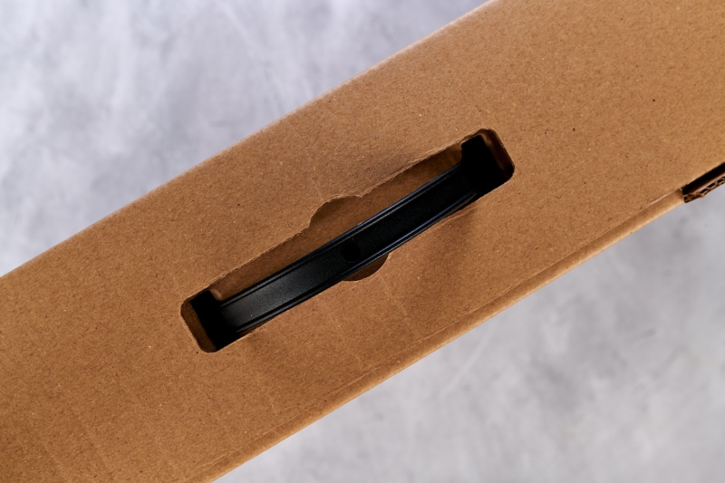 У нашего заказчика были индивидуальные запросы и пожелания по упаковке, поэтому мы взяли за основу две конструкции и соединили их в одну. Получился своеобразный “гибрид” FEFCO 0215 и 0216. Верх состоял из 4-х клапанов и 2-х замков, а низ стандартный, который необходимо склеивать скотчем. Также на клапанах сверху мы сделали отверстие для крепления пластиковой ручки, как и хотел клиент. Плюс к этому мы добавили еще и ложементы, которые позволили прочно фиксировать мониторы внутри короба.