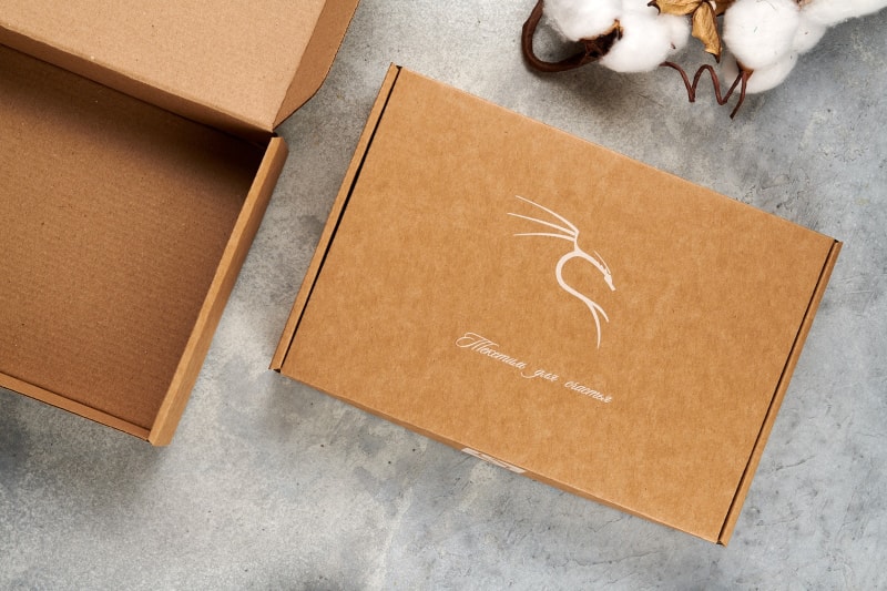 В проекте мы использовали флексографическую печать в один цвет на буром целлюлозном микрогофрокартоне.