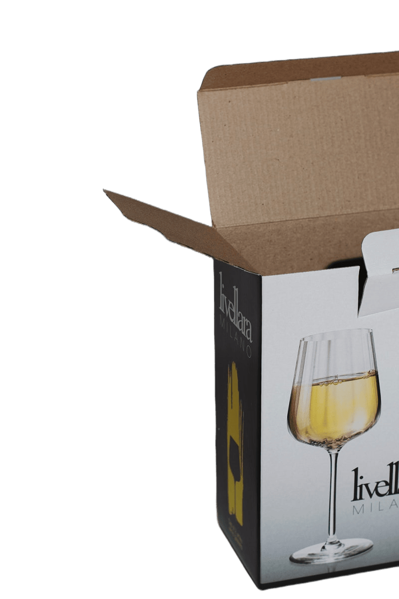 Мы учли еще один важный момент - у клиента товар очень хрупкий, поэтому его было необходимо прочно закрепить внутри упаковки. В итоге, мы разработали индивидуальные ложементы для бокалов, которые позволили зафиксировать их в коробке.