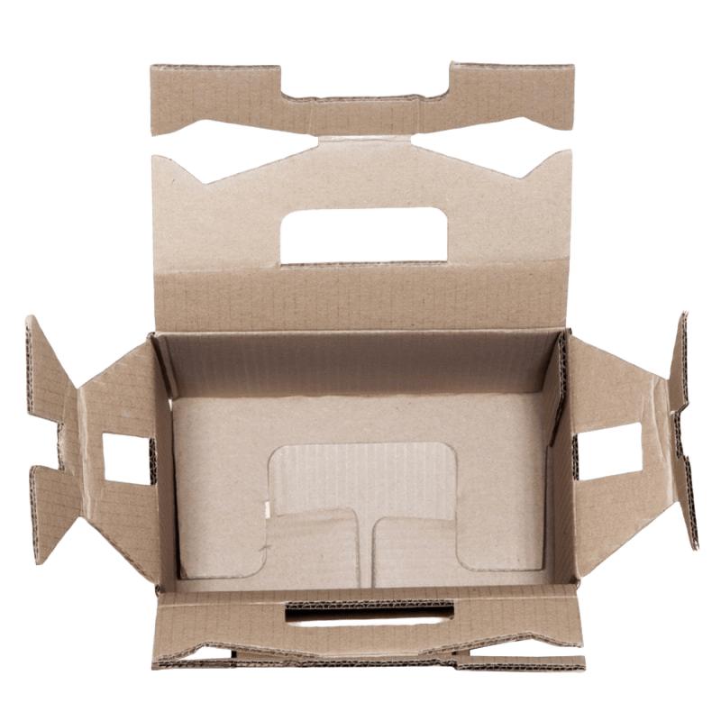 В качестве основы конструкции клиент выбрал уже знакомую ему и хорошо зарекомендовавшую себя модель картонной  коробки-чемоданчика с ручками 0217. Для большей надежности конструкторы модифицировали стандартную модель и добавили особо прочные двуслойные «ушки», к которым крепится ручка коробки.